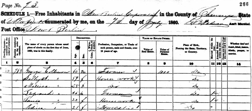 George Colburn family in the 1860 census records for New Berlin, Chenango County