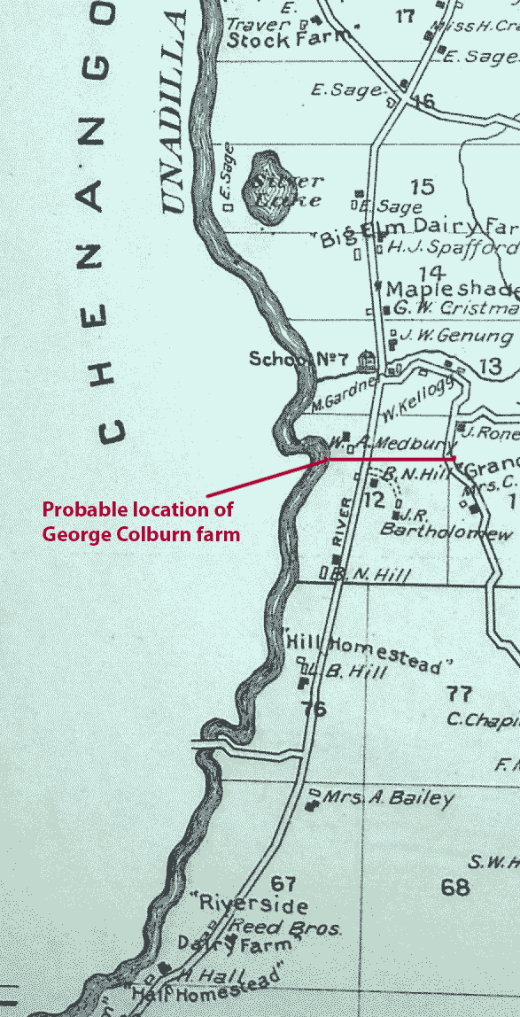 From New Century Atlas of Otsego County NY, 1903. George Colburn's farm is likely where W(illiam) A. Medbury's appears.