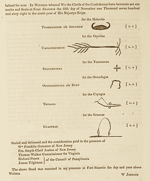 Transcript of the signature section of the 1768 Treaty of Fort Stanwix Ref