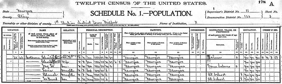 From the 1900 census for Milford, NY. Charles and Charlotte live with at least four children (the youngest may be listed on the next census page.)