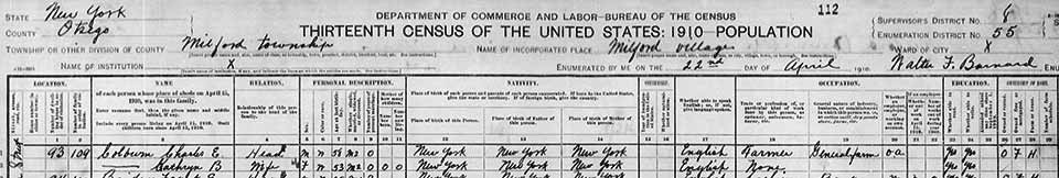 The 1910 census shows Charles at 58, newly married to his second wife Kathryn, 53. It is a second marriage for both. Charles owns the house on South Main Street, Milford Village, and a “general farm.”