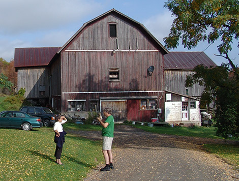 Hillside Stock Farm barn from the south, 2008. Bill Gasperini talks with the current owner, Ms. Susan Ward.