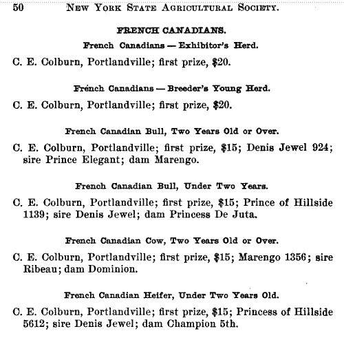 For several years around the turn of the 20th century, Charles and his herd swept the French Canadian category of the annual Cattle Show and Fair of the New York State Agricultural Society.