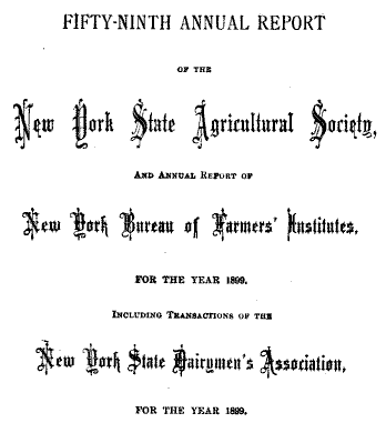 from the 1899 Annual Report of the New York Agricultural Society Ref