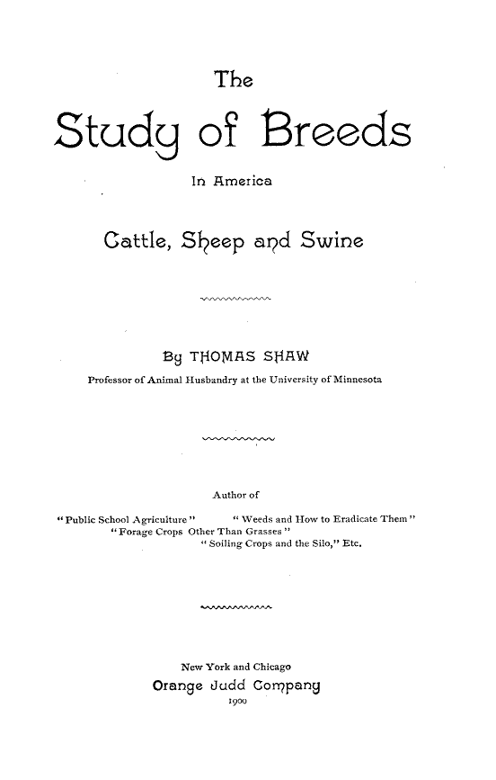 Title page of a 1900 book, The Study of Breeds in American Cattle, Sheep and Swine