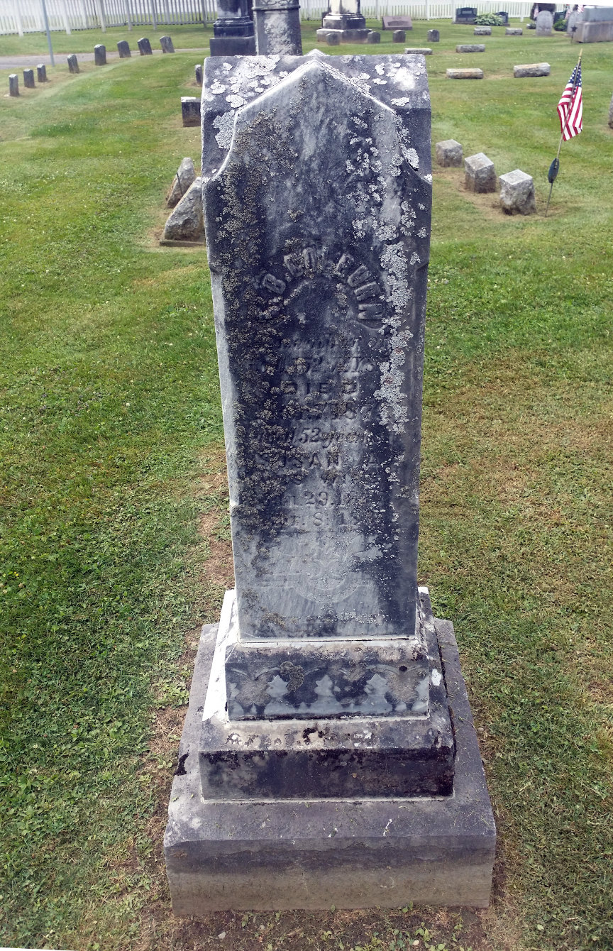 The Colburn plot in the Hillington Cemetery in Morris, New York features an obelisk with inscriptions on three of its four sides. Oddly, the side facing the footstones marking the graves of Mother (Susan) and Father (Elijah) remembers not them but a son, Lee, who died at age 27 in 1882. Son Scott, remembered in family lore as having gained and lost a fortune in California mines then returned a broken man, is briefly mentioned on a third side.