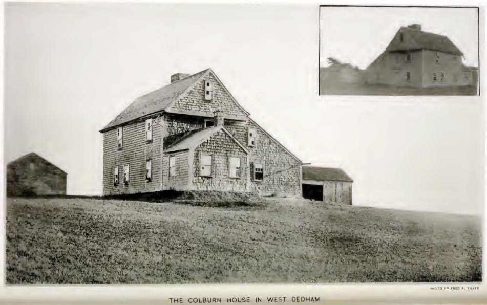 The house belonged in turn to Lieutenant Joseph, his son Captain Joseph Jr., his son Isaac, and finally his son Isaac Jr. (the titular patriarch of The Descendants of Isaac Colburn, Jr. of West Dedham, Massachusetts, cited several times in this history.)