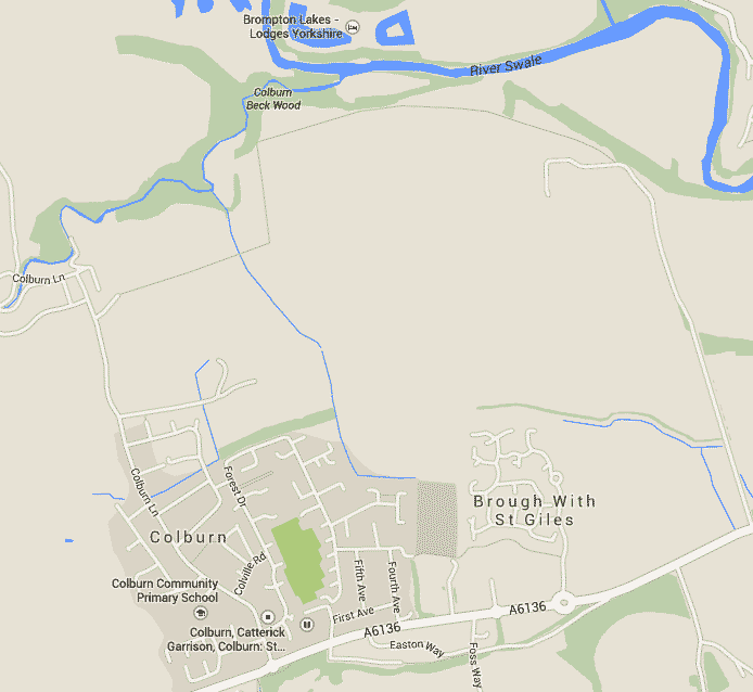 The village of Colburn lies just south of Colburn Beck, a creek running into the river Swale, in North Yorkshire