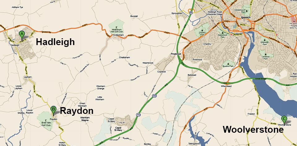 Part of Suffolk, west and south of Ispwich, the county seat.