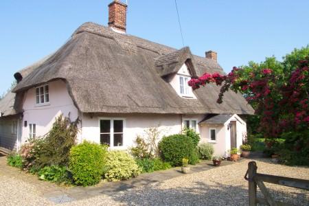 An old thatched-roof house in Raydon, Suffolk, in 2014.