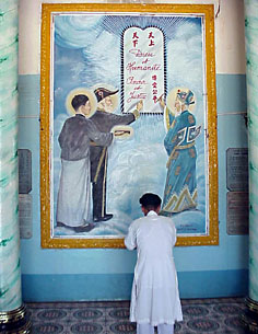 of Caodaism praying at the Great Temple