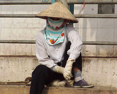 In Vietnam, suntans are associated with those who must work in the sun (i.e. lower class). Many women go to elaborate lengths to bundle up, wearing gloves, hats and cloth face masks as they go about their daily business.